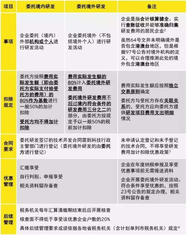 2018年6月25日,財政部、稅務總局、科技部日前聯(lián)合發(fā)布《關于企業(yè)委托境外研究開發(fā)費用稅前加計扣除有關政策問題的通知》(財稅[2018]64號)(以下簡稱”64號文”),自2018年1月1日起執(zhí)行。
