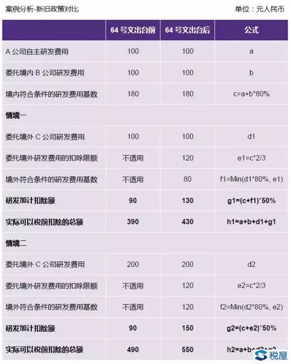 與119號文相比,64號文明確了符合條件的委托境外進行研發(fā)活動所發(fā)生的費用可以按三分之二的部分進行企業(yè)所得稅前加計扣除。之前119號文中明確規(guī)定“企業(yè)委托境外機構(gòu)或個人進行研發(fā)活動所發(fā)生的費用,不得加計扣除”,只有委托境內(nèi)機構(gòu)或個人進行研發(fā)活動發(fā)生的費用,可以按照費用實際發(fā)生額的80%計入委托方研發(fā)費用并計算加計扣除。這一改變,鼓勵了企業(yè)委托境外機構(gòu)開展研發(fā)活動,對于在境外投資建立研發(fā)中心起了重要的支持作用。但是64號文中也強調(diào)指出,受托方范圍不包括委托境外個人。
